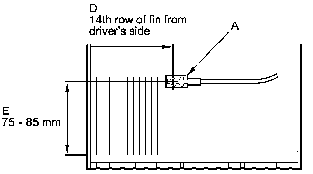 - When the evaporator temperature sensor is reinstalled into the original evaporator core, set the sensor into the new position (D, E) because the fin may be deformed by the previous installation.