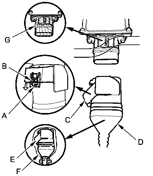 - Cover the disconnected connector (E) with a plastic bag (F), and wrap the IMA motor power cable terminals with insulating tape (G).