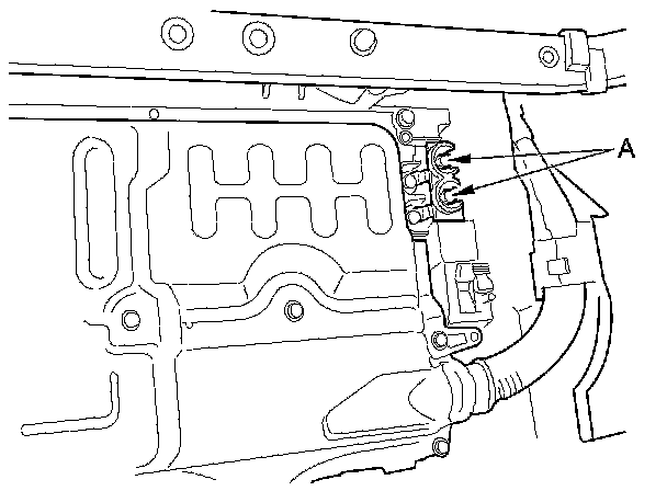8. Measure the voltage at the IMA battery module terminals (A). There should be less than 30 V. If the voltage is more than 30 V, there is a problem in the system; check for IMA DTCs before continuing.