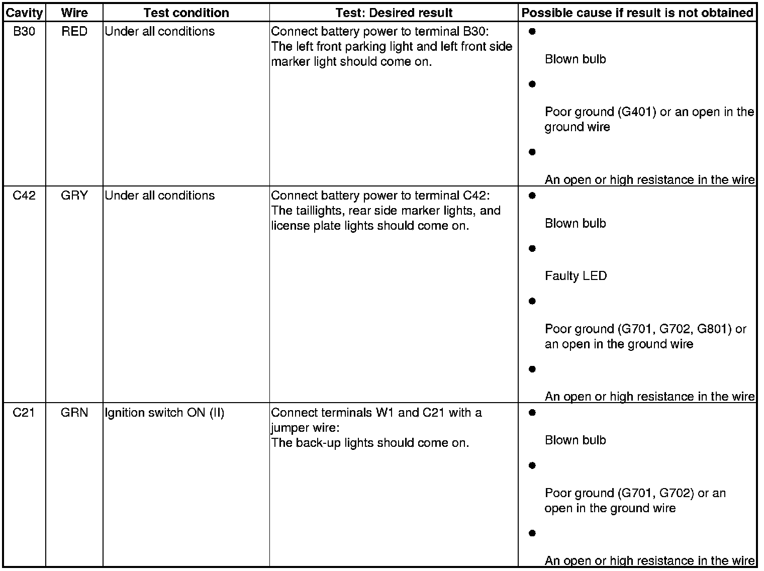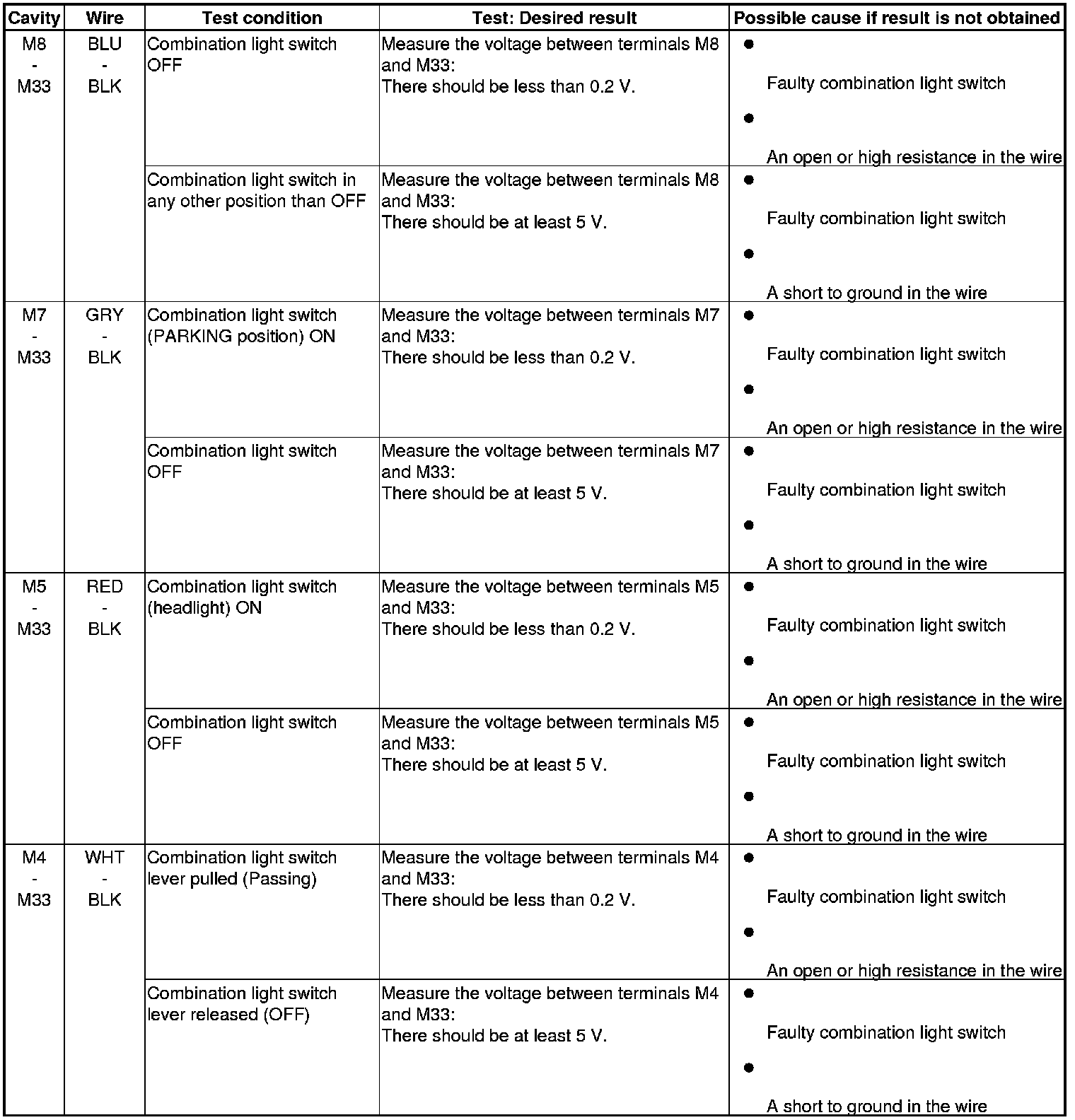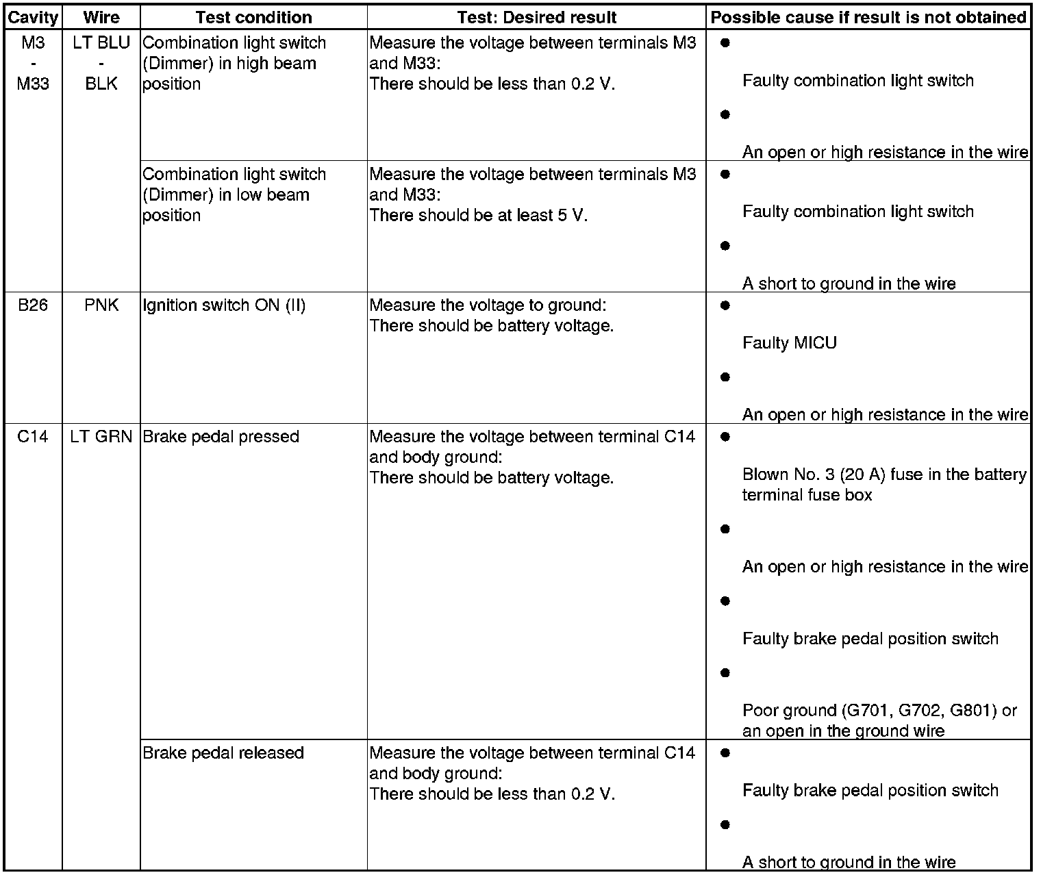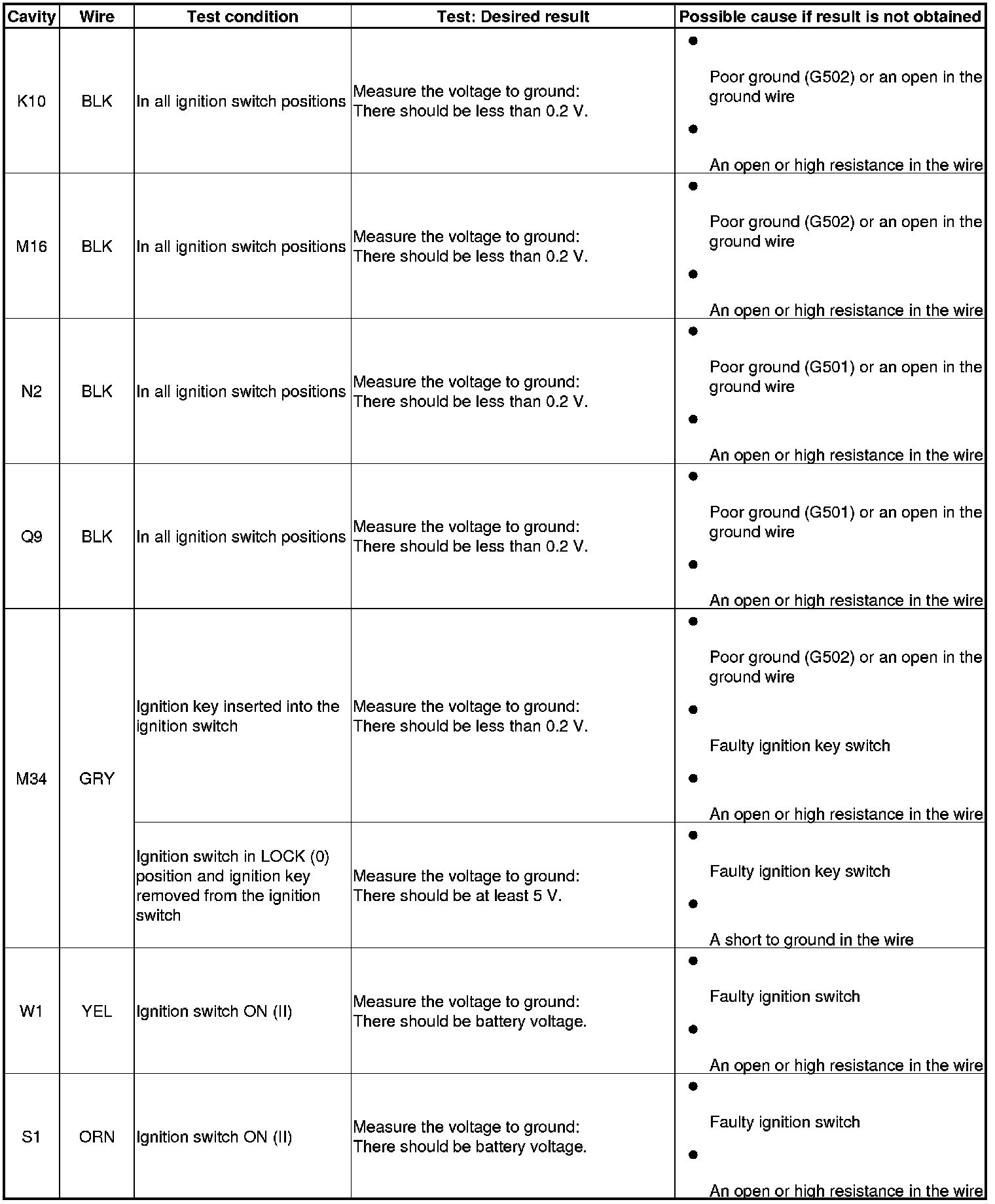 NOTE: Before doing the input tests, check the No. 1 (15 A), No. 5 (10 A), No. 15 (7.5 A), No. 22 (7.5 A), No. 24 (10 A), No. 28 (20 A), No. 29 (10 A), No. 32 (10 A), No. 34 (10 A), No. 48 (10 A), No. 51 (10 A), and No. 60 (IGN) (50 A) fuses in the under-dash fuse/relay box.