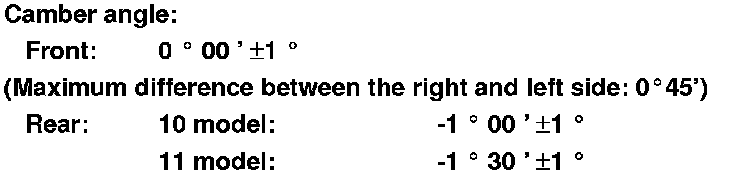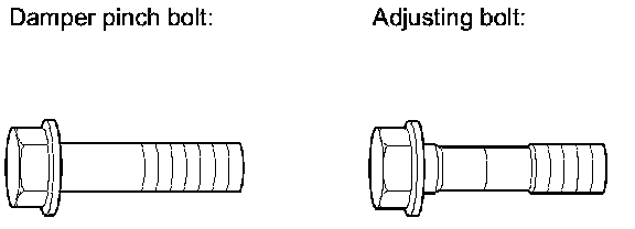 - The camber angle can be adjusted up to ±20 ' (center of tolerance) by replacing one damper pinch bolt with the adjusting bolt.