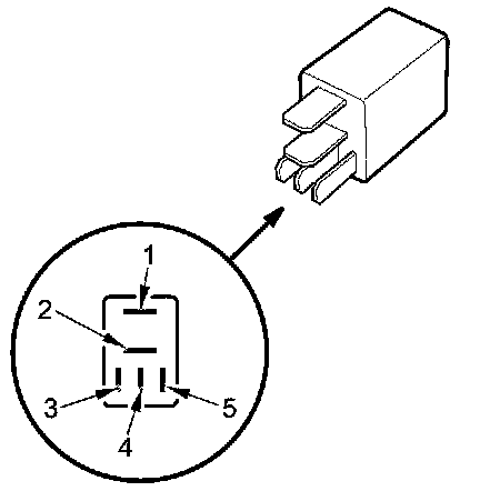 - There should be continuity between terminals No. 1 and No. 2 when battery power is connected to terminal No. 5, and body ground is connected to terminal No. 3.