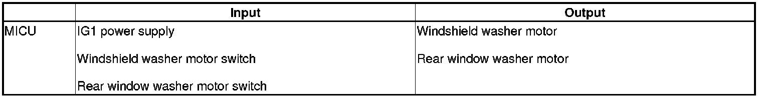 The MICU control of the windshield washer and the rear window washer motor is based on inputs from each switch.