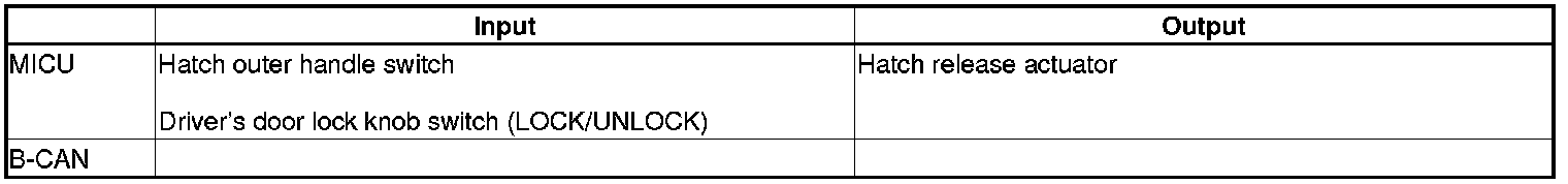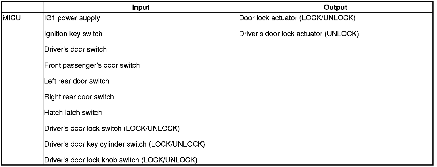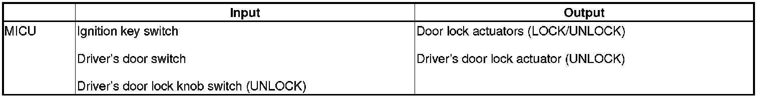 The MICU control of the door lock actuators is based on inputs from each switch and B-CAN data.