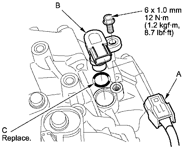 10. Install a new O-ring (C) on a new vehicle speed sensor, then install the vehicle speed sensor in the transmission housing.