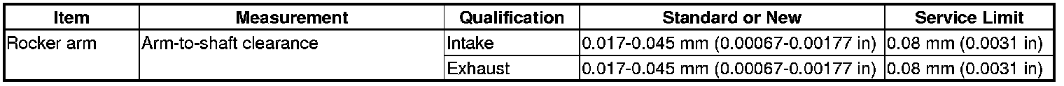 Rocker Arm Specification(s)