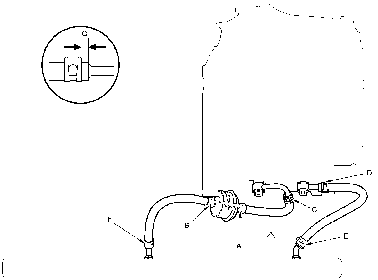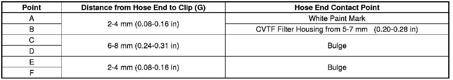 1. Install the CVTF cooler hoses over the CVTF cooler lines with the clips at appropriate points in reference to the following list.