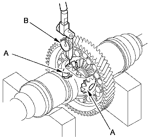 2. Check the backlash of the pinion gears (A) using a dial indicator (B).