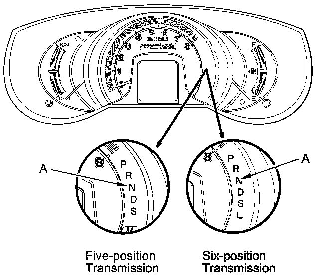 39. Turn the ignition switch to ON (II). Move the shift lever to each position, and check that the A/T gear position indicator follows the transmission range switch.