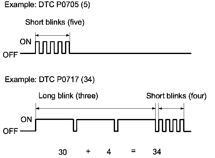 When an abnormality occurs in the signal from a sensor, a switch, a solenoid valve, or another control unit, the PCM stores a Pending or Confirmed DTC for the failure and blinks the D indicator and/or turns on the MIL immediately.