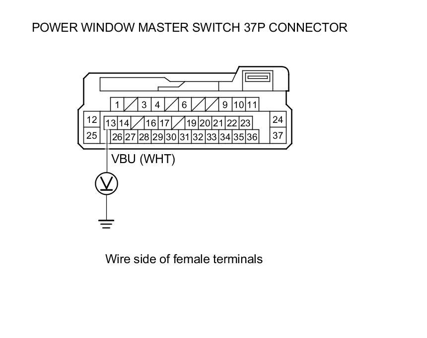 6. Measure the voltage between body ground and power window master switch 37P connector terminal No. 13.