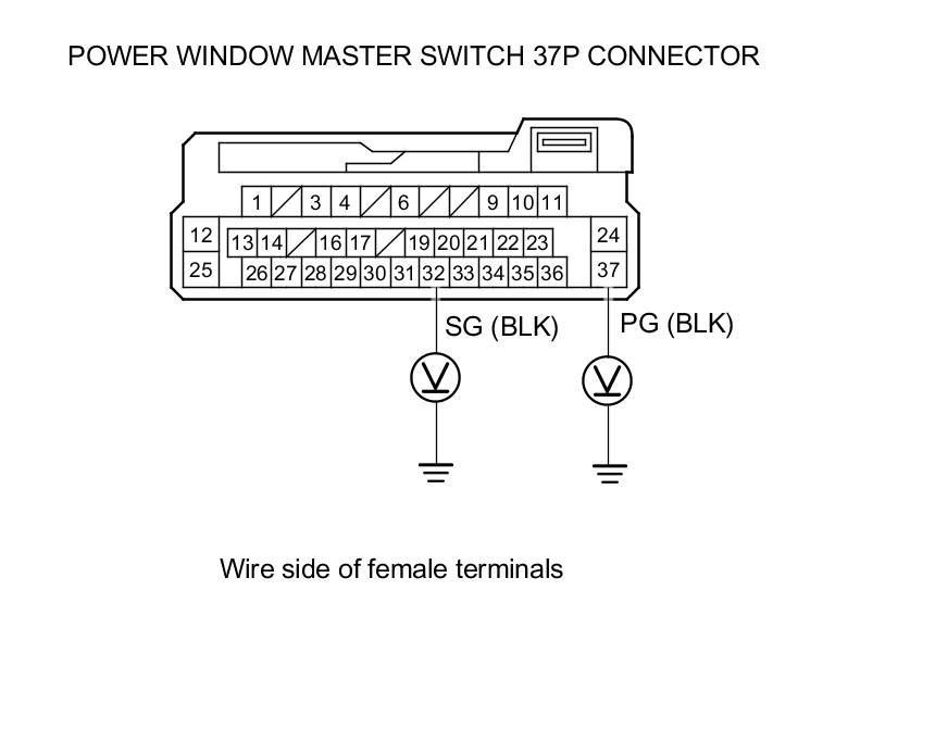 8. Measure the voltage between body ground and power window master switch 37P connector terminals No. 32 and No. 37 individually.