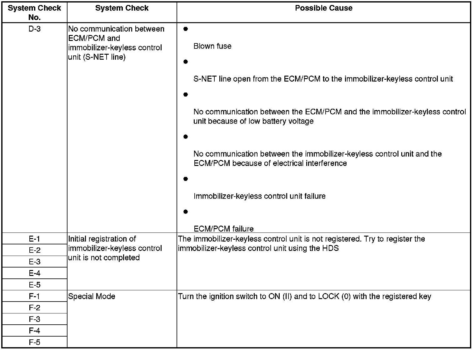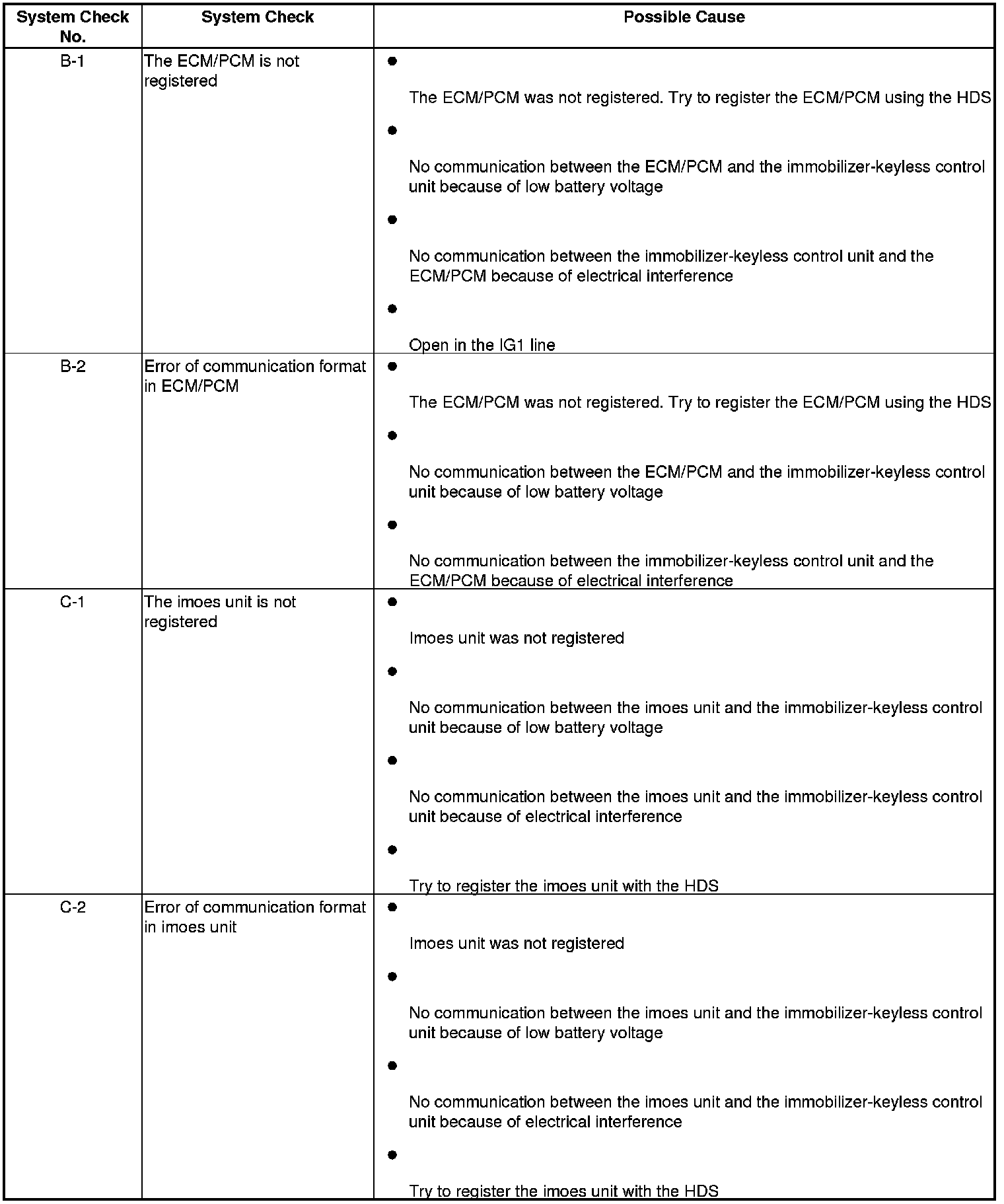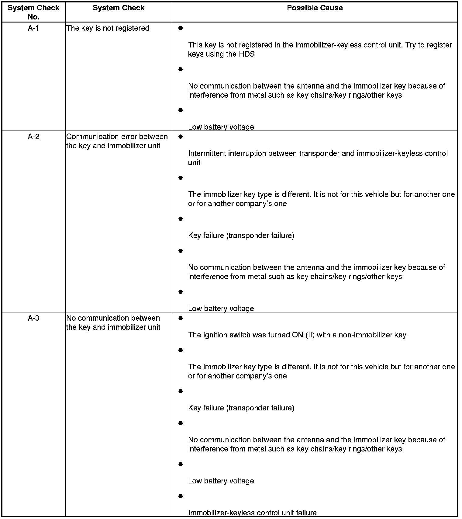 Immobilizer System Check