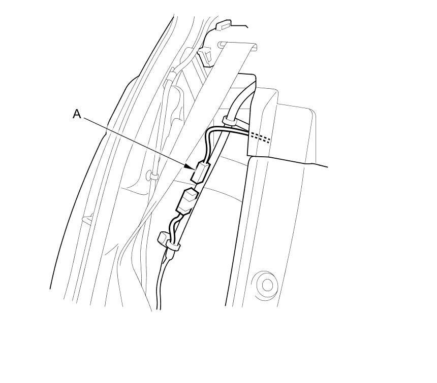 3. For some models: Disconnect the rear active noise cancellation microphone subharness connector (A).