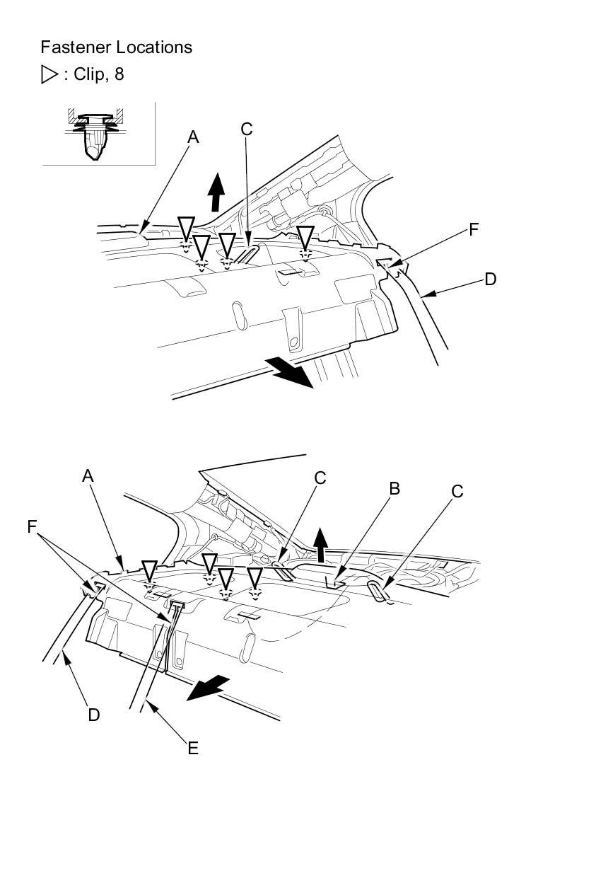- Remove any clips left in the body with a clip remover, and install them on the rear shelf.