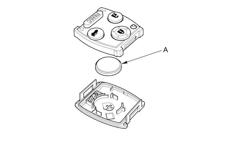 4. Replace the transmitter battery (A) with a new one (CR1616), and try to lock and unlock the doors with the transmitter by pressing the lock or unlock button five or six times.