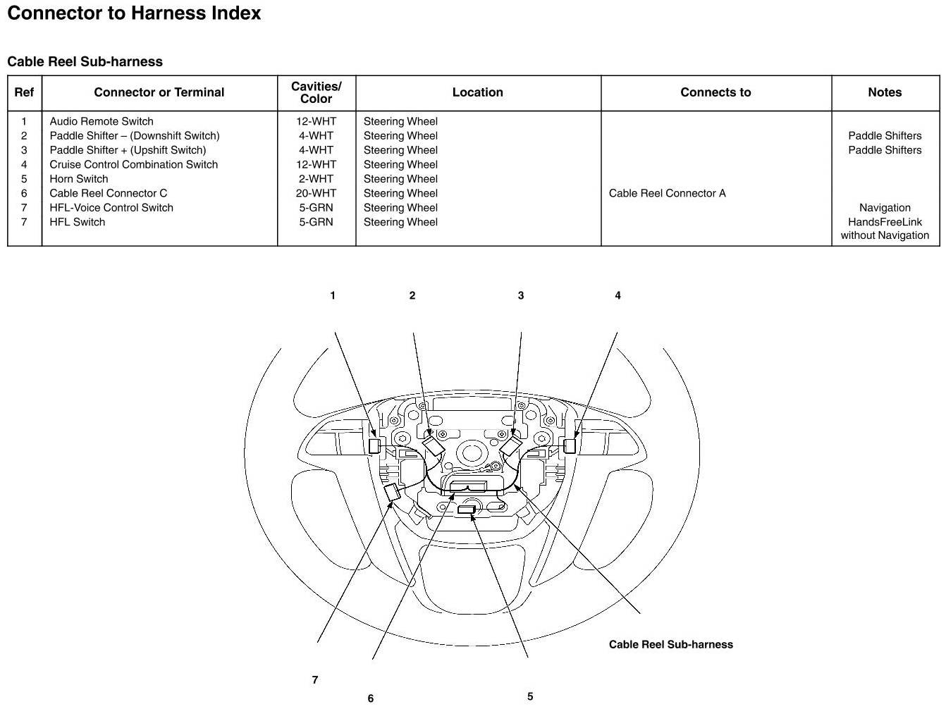 Cable Reel Subharness Connector and Harness Locations