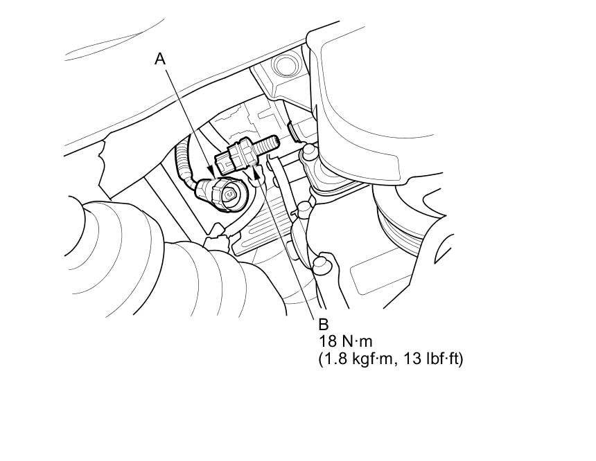 1. Disconnect the oil pressure switch 1P connector (A), then remove the oil pressure switch (B).