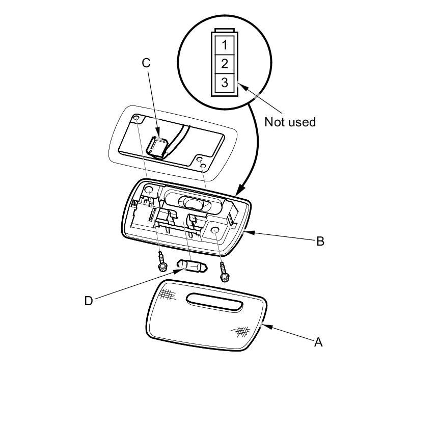 6. If the continuity is not as specified, check the bulb (D). If the bulb is OK; replace the ceiling light.