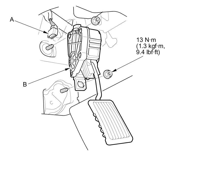NOTE: The APP sensor is not available separately. Do not disassemble the accelerator pedal module.