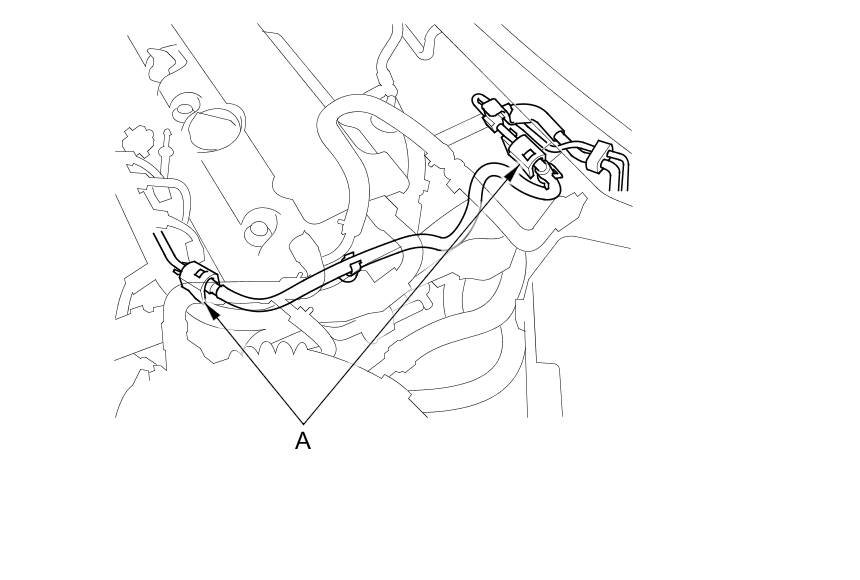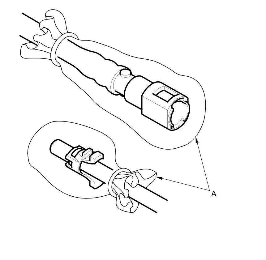 6. To prevent damage and keep foreign matter out, cover the disconnected connector and line ends with plastic bags (A).