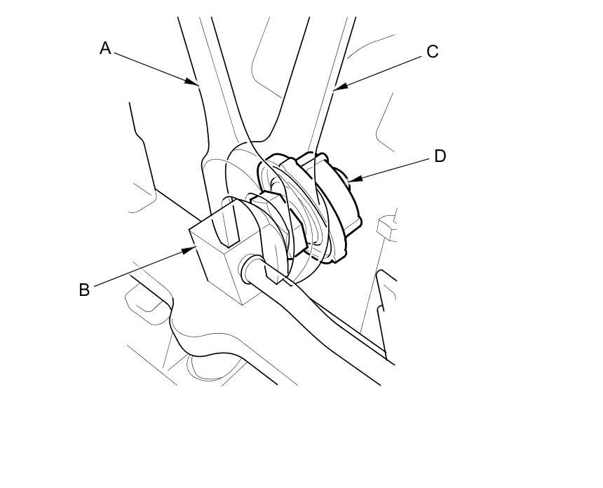 4. Place a wrench (C) on the fuel pulsation damper (D), and loosen it.