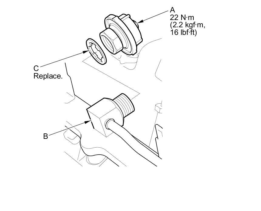 6. Install the parts in the reverse order of removal with a new sealing washer (C).