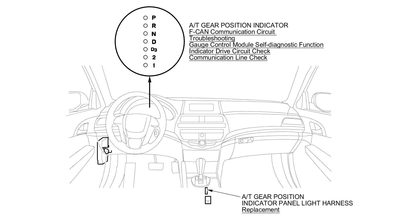 A/T Gear Position Indicator Component Location Index