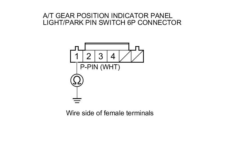 17. Check for continuity between A/T gear position indicator panel light/park pin switch 6P connector terminal No. 1 and body ground.