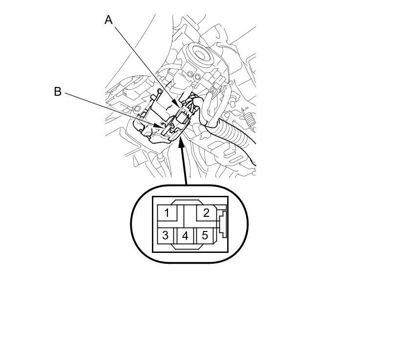 3. Disconnect the 5P connector (A) from the ignition switch (B).