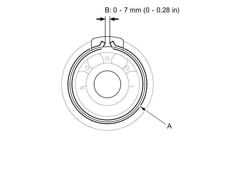 6. After installing the bearings check that the snap rings (A) are seated in the bearing and the transmission housing grooves, and that the snap ring end gaps (B) are correct.