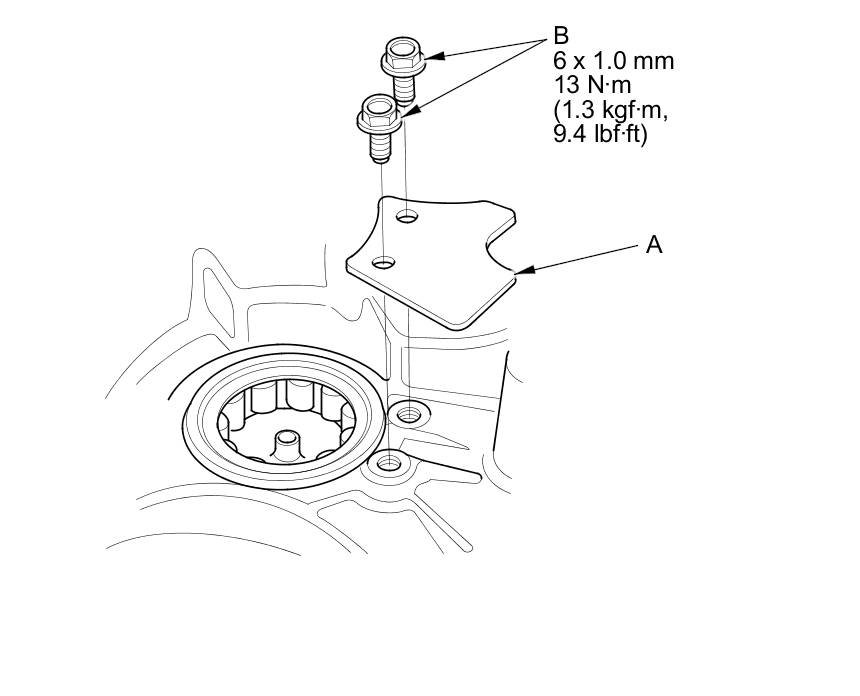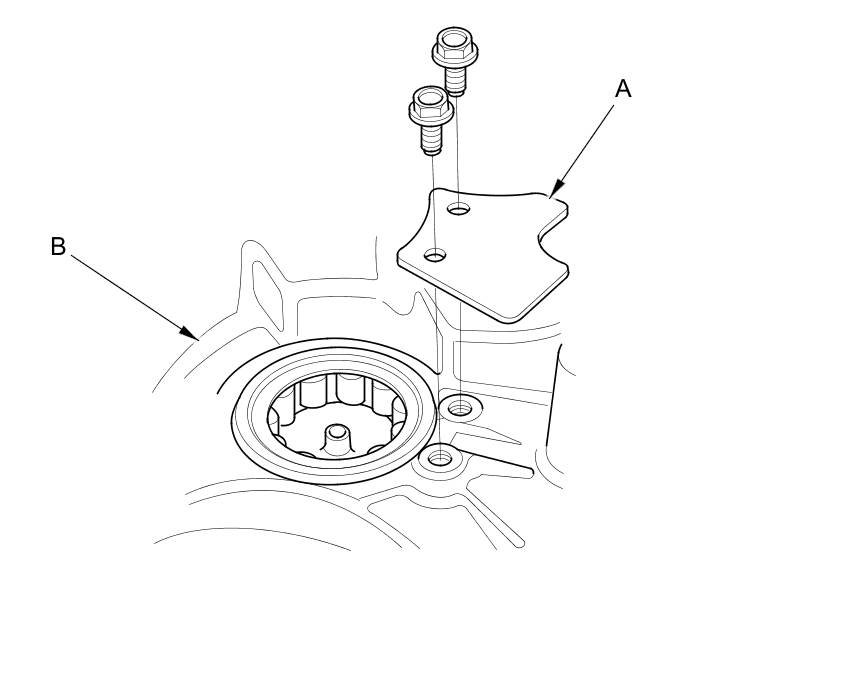 1. Remove the bearing set plate (A) from the clutch housing (B).