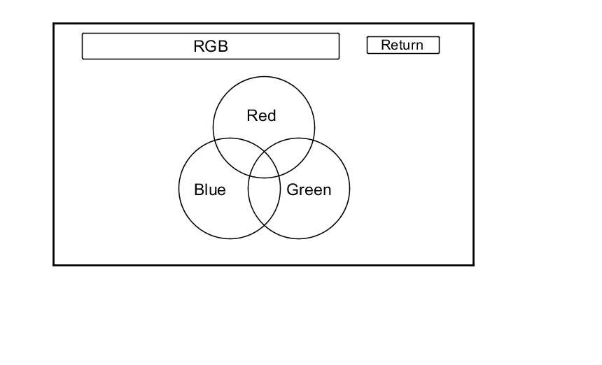 This screen verifies that the navigation display unit is receiving the video (R, G, B and Composite sync) signals properly. The three primary colors should all appear without distortion. The combination of all three should produce a central white section. If any of the colors are missing, troubleshoot for the color signal Symptom Troubleshooting. If the picture has lines in it or scrolls horizontally, or vertically, troubleshoot for a composite sync problem Symptom Troubleshooting.