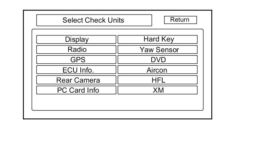 This diagnosis checks for problems in the navigation unit. When you initiate this diagnosis, the navigation unit may freeze or delay up to a minute while the diagnosis runs.