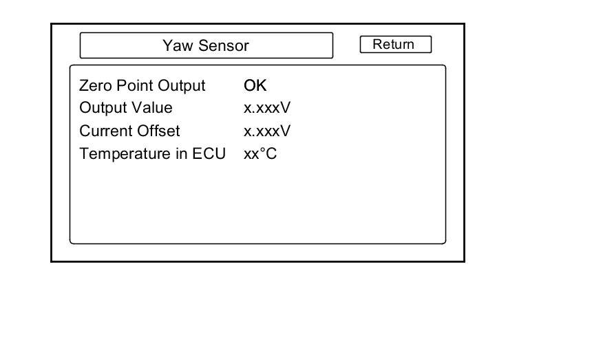 This diagnosis gives a quick test of the yaw rate sensor functionality based on the two voltages Sensor and Offset. For more information see the Yaw Rate diagnosis.