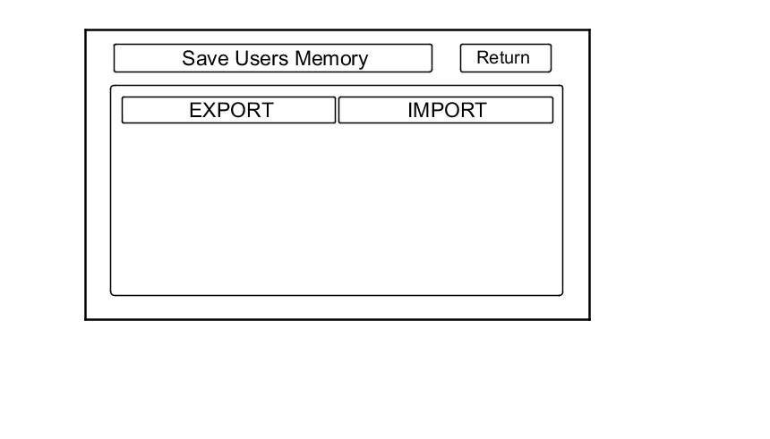 When replacing the navigation unit, this function allows the dealer to transfer the customer's personal data to the new navigation unit. The transferred information includes their Setup settings, and personal addresses. The dealer inserts a PC card to the navigation unit, and then selects the Save Users Memory function. The two functions in this diagnostic screen are EXPORT and IMPORT. EXPORT saves the customer's data to the PC card, and IMPORT moves the PC card files to the new navigation unit.