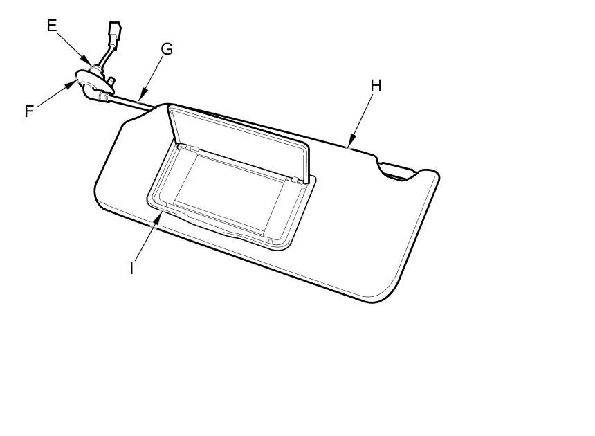- Any bends or cracks in the sunvisor stay shaft (G)