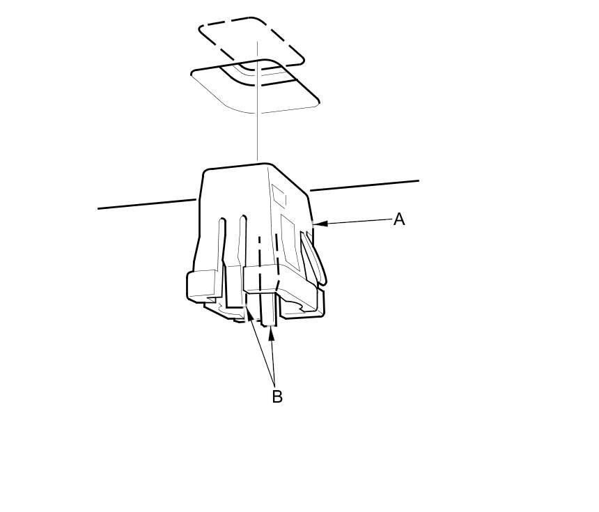 5. Pry out the holder grommet (A) from the body by pinching its hooks (B).