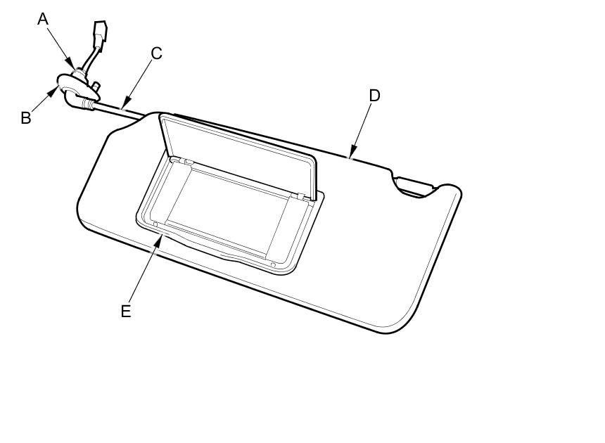 - Any cracks in the sunvisor base (D)
