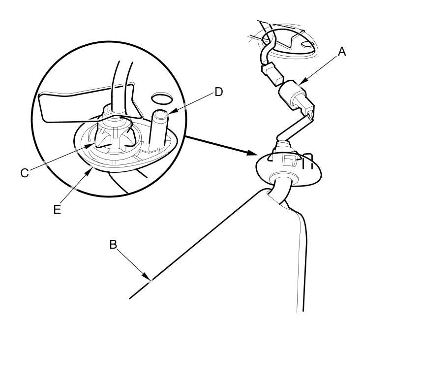 4. Turn the holder (A) 45 ° counterclockwise, and pull it down to remove it from the holder grommet (B).