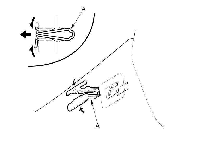 NOTE: The upper clip must be replaced with a new one when the A-pillar trim is reinstalled.
