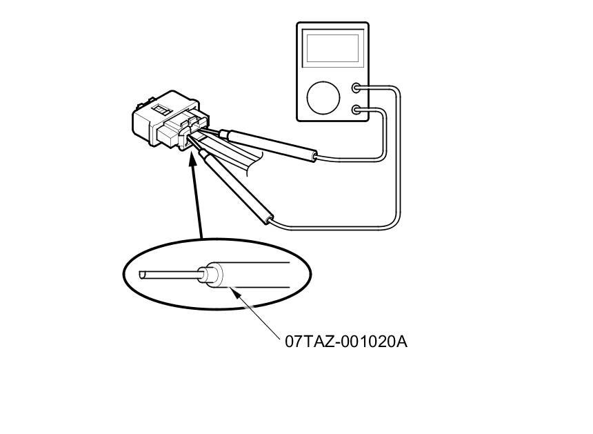 - Use only a digital multimeter to check the system. If it is not a Honda multimeter, make sure its output is 10 mA (0.01 A) or less when switched to the lowest value in the ohmmeter range. A tester with a higher output could cause accidental deployment and possible injury.
