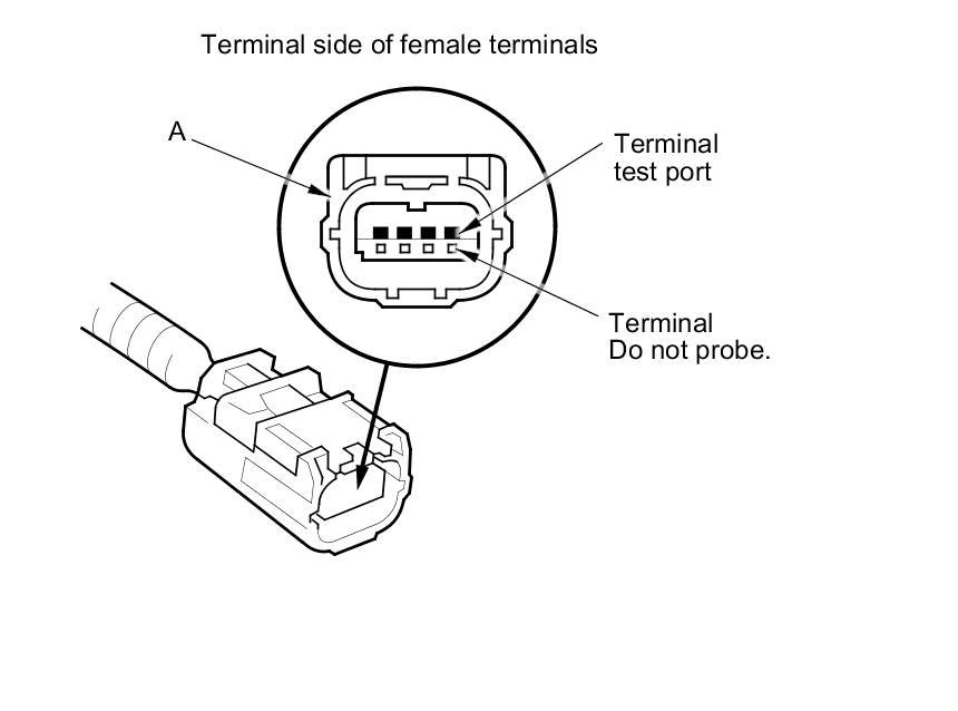 - To prevent damage to the connector terminals, do not insert the test equipment probes, paper clips, or other substitutes as they can damage the terminals. Damaged terminals can cause a poor connection and an incorrect measurement.