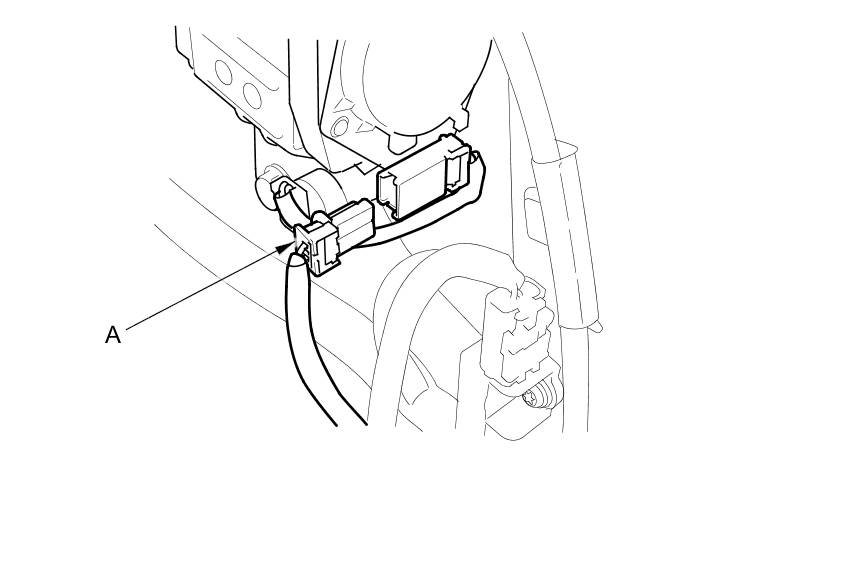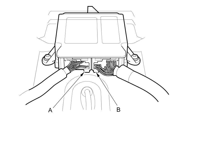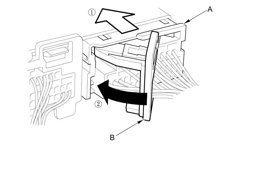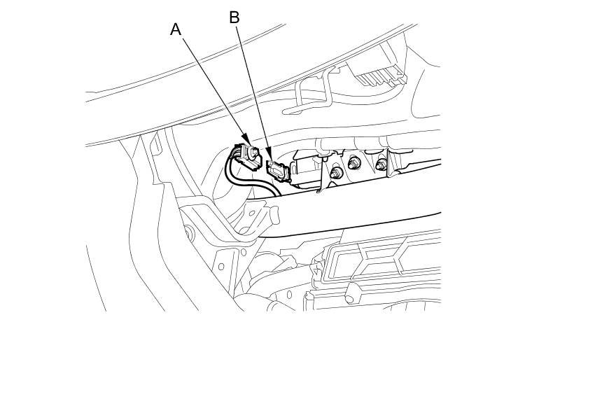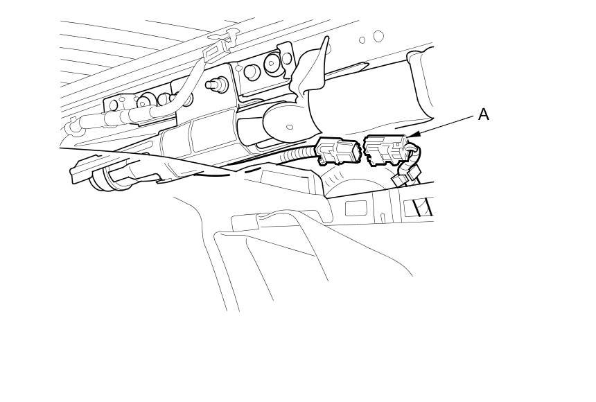To reconnect the connector (A), push in on the connector. As the connector is pressed in, the lever (B) moves to the locked position.