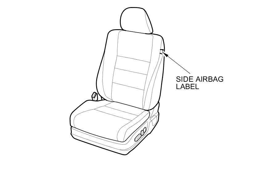 Front seats with side airbags have a "SIDE AIRBAG" label on the seat-back.