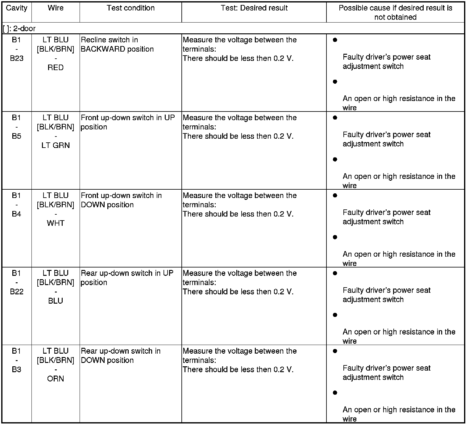 5. Reconnect the connectors to the power seat control unit, and do the following input tests: