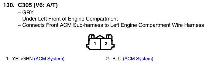View 130 - C305 Connector View (V6: A/T)