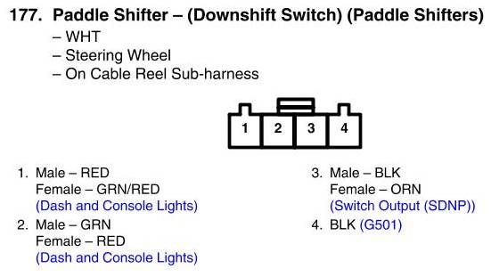 View 177 - Paddle Shifter - (Downshift Switch) Connector View (Paddle Shifters)