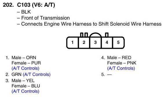 View 202 - C103 Connector View (V6: A/T)