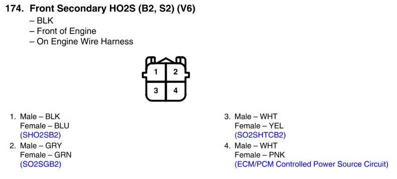 Front Secondary HO2S (B2, S2) Connector View